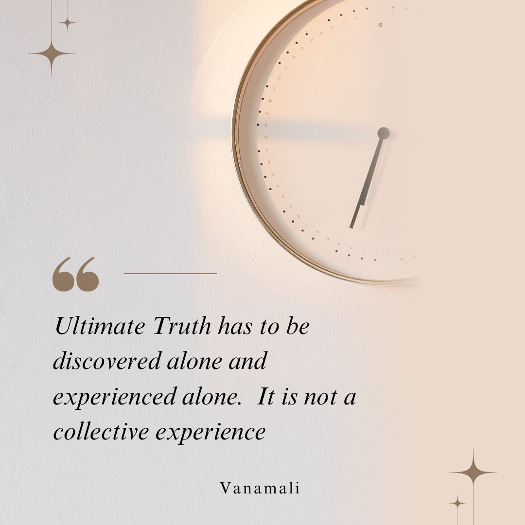 The ultimate truth cannot be borrowed, inherited, or collectively owned, it must be discovered alone and experienced within. No amount of outer noise can replace the stillness required for that inner awakening. The real journey to liberation is a solitary one, guided by self-effort, awareness, and grace.