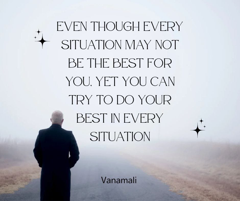 Even though every situation may not be ideal, each one offers an opportunity to act with effort and integrity. Doing your best does not change the situation immediately, but it strengthens your character and resilience. Over time, this mindset transforms challenges into lessons and growth. It reminds us that while circumstances are beyond control, our response never is.